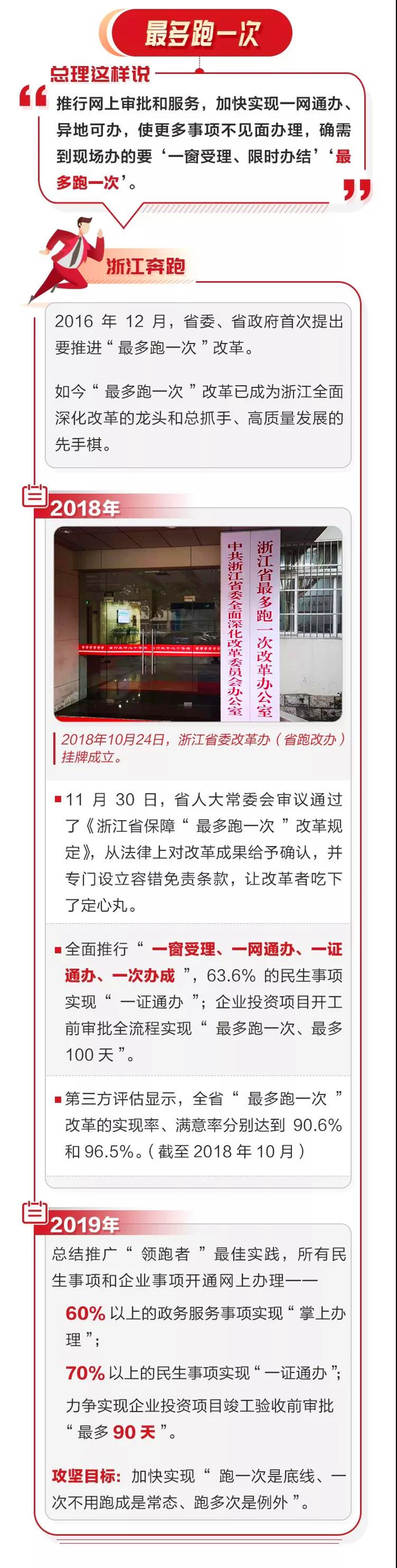去年10月,浙江出现了一起有意思的舆情,有网友发了张照片,吐槽浙江“最多跑一次改革办公室”是全世界最奇葩的“衙门”,结果不仅没获得认同,还被大批跟帖者现身说法、严肃纠正:这是真正的“良政”。这项名称不够“洋气”的改革起源于2016年底,目标很明确,就是让群众和企业到政府办事时,从受理申请到形成办理结果全过程只需一次上门或零上门。